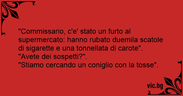 "Commissario, c'e' stato un furto al supermercato: hanno rubato duemila scatole di sigarette e una tonnellata di carote".