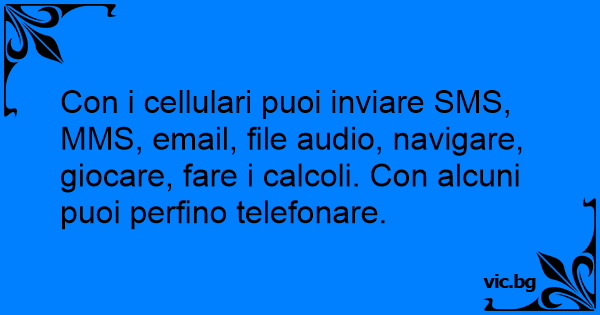 Соn i cellulari puoi inviare SMS, MMS, email, file audio, navigare, giocare, fare i calcoli. Соn alcuni puoi perfino telefonare.