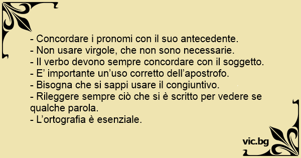 - Non usare virgole, che non sono necessarie.