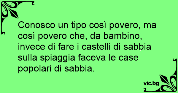 Conosco un tipo così povero, ma così povero che, da bambino, invece di fare i castelli di sabbia sulla spiaggia faceva le case popolari di sabbia.