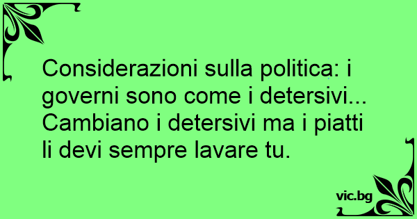 Considerazioni sulla politica: i governi sono come i detersivi... Cambiano i detersivi ma i piatti li devi sempre lavare tu.