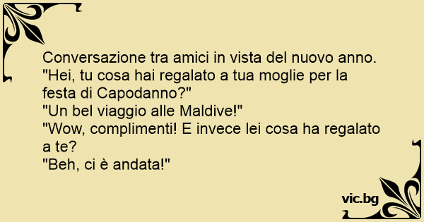 "Hei, tu cosa hai regalato a tua moglie per la festa di Capodanno?"