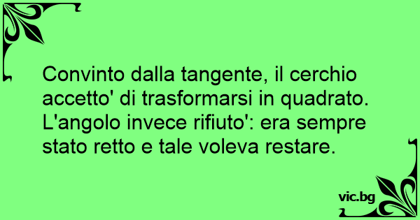 L'angolo invece rifiuto': era sempre stato retto e tale voleva restare.