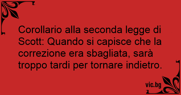 Corollario alla seconda legge di Scott: Quando si capisce che la correzione era sbagliata, sarà troppo tardi per tornare indietro.