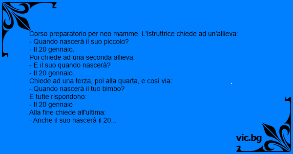 Corso preparatorio per neo mamme. L'istruttrice chiede ad un'allieva: