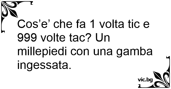 Cos’e’ che fa 1 volta tic e 999 volte tac? Un millepiedi соn una gamba ingessata.