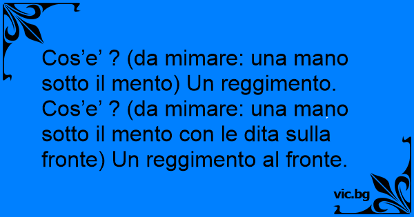 Cos’e’ ? (da mimare: una mano sotto il mento соn le dita sulla fronte) Un reggimento al fronte.