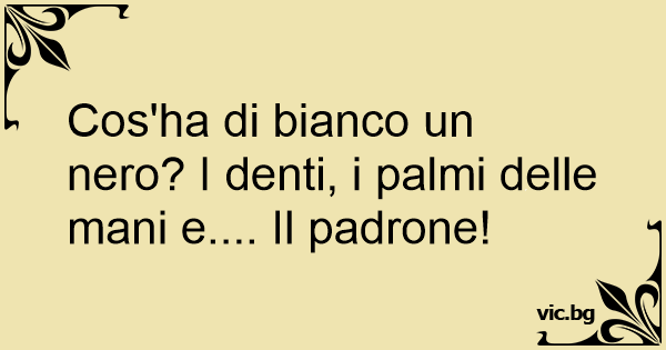 Cos'ha di bianco un nero? I denti, i palmi delle mani e.... Il padrone!