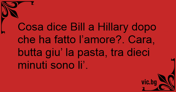 Cosa dice Bill a Hillary dopo che ha fatto l’amore?. Cara, butta giu’ la pasta, tra dieci minuti sono li’.