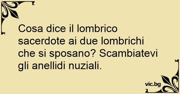 Cosa dice il lombrico sacerdote ai due lombrichi che si sposano? Scambiatevi gli anellidi nuziali.