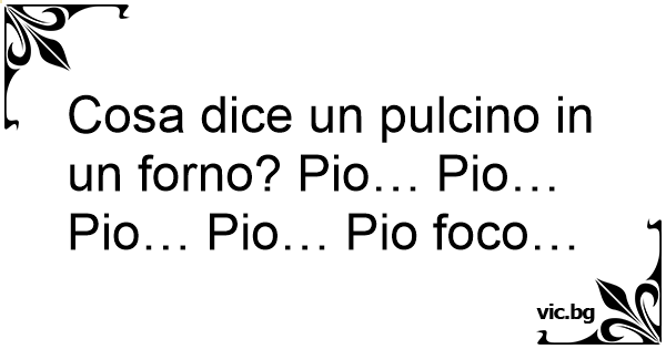 Cosa dice un pulcino in un forno? Pio… Pio… Pio… Pio… Pio foco…