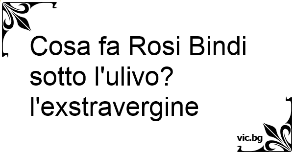 Cosa fa Rosi Bindi sotto l'ulivo? l'exstravergine