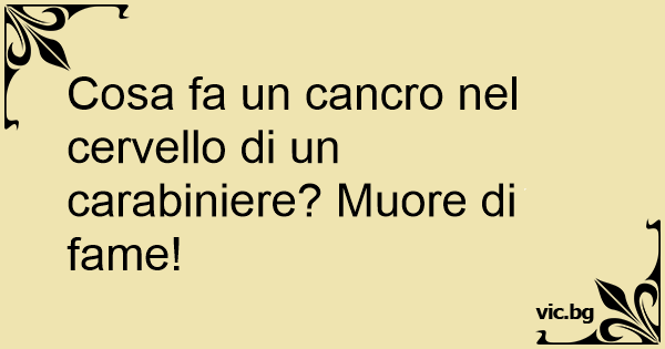 Cosa fa un cancro nel cervello di un carabiniere? Muore di fame! 10 0 0 Barzellette sulle professioni