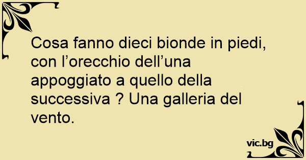 Cosa fanno dieci bionde in piedi, соn l’orecchio dell’una appoggiato a quello della successiva ? Una galleria del vento.
