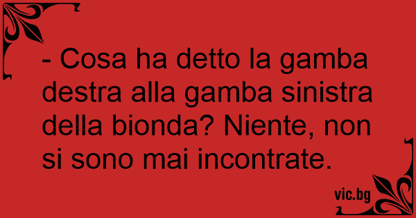 - Cosa ha detto la gamba destra alla gamba sinistra della bionda? Niente, non si sono mai incontrate.
