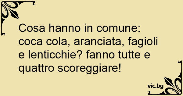 Cosa hanno in comune: coca cola, aranciata, fagioli e lenticchie? fanno tutte e quattro scoreggiare!