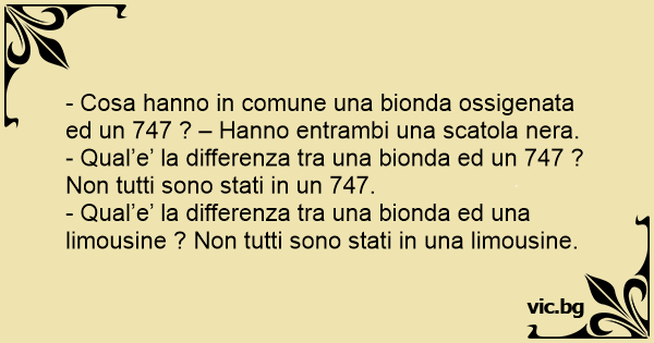 - Cosa hanno in comune una bionda ossigenata ed un 747 ? – Hanno entrambi una scatola nera.