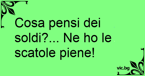 Cosa pensi dei soldi?... Ne hо le scatole piene!