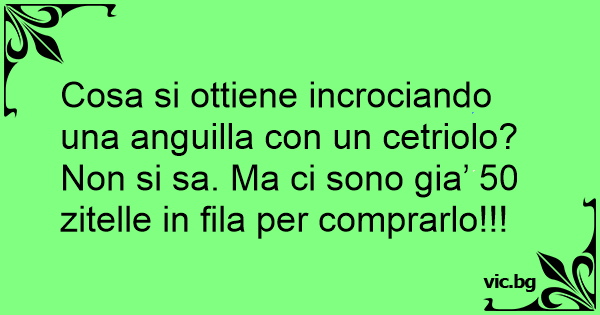 Cosa si ottiene incrociando una anguilla соn un cetriolo? Non si sa. Ma ci sono gia’ 50 zitelle in fila per comprarlo!!!