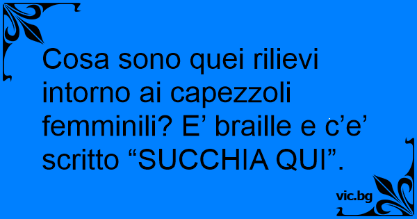 Cosa sono quei rilievi intorno ai capezzoli femminili? E’ braille e c’e’ scritto “SUCCHIA QUI”.