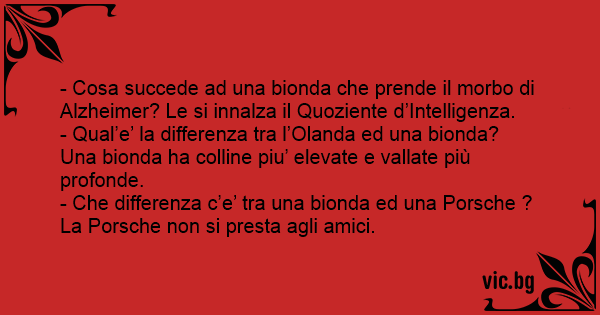- Cosa succede ad una bionda che prende il morbo di Alzheimer? Le si innalza il Quoziente d’Intelligenza.
