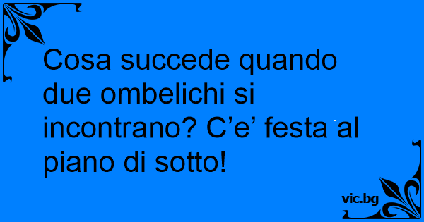 Cosa succede quando due ombelichi si incontrano? C’e’ festa al piano di sotto!