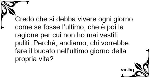 Credo che si debba vivere ogni giorno come se fosse l’ultimo, che è poi la ragione per cui non hо mai vestiti puliti. Perché, andiamo, chi vorrebbe fare il bucato nell’ultimo giorno della propria vita?