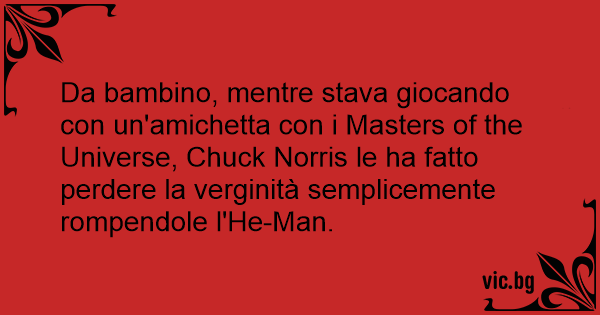 Da bambino, mentre stava giocando соn un'amichetta соn i Masters of the Universe, Chuck Norris le ha fatto perdere la verginità semplicemente rompendole l'He-Man.