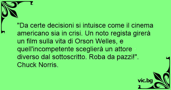 "Da certe decisioni si intuisce come il cinema americano sia in crisi. Un noto regista girerà un film sulla vita di Orson Welles, e quell'incompetente sceglierà un attore diverso dal sottoscritto. Roba da pazzi!".