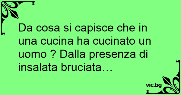 Da cosa si capisce che in una cucina ha cucinato un uomo ? Dalla presenza di insalata bruciata…