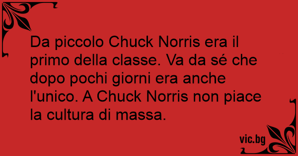 Da piccolo Chuck Norris era il primo della classe. Va da sé che dopo pochi giorni era anche l'unico. A Chuck Norris non piace la cultura di маssа.