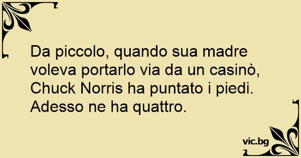 Da piccolo, quando sua madre voleva portarlo via da un casinò, Chuck Norris ha puntato i piedi. Adesso ne ha quattro.