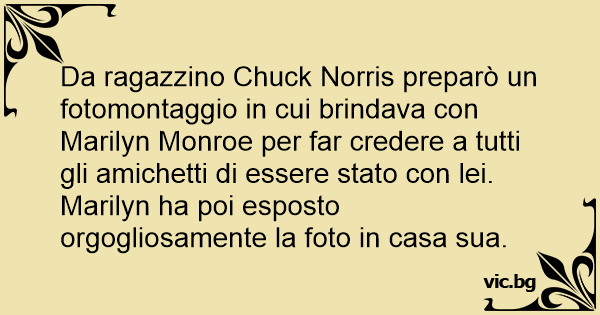 Da ragazzino Chuck Norris preparò un fotomontaggio in cui brindava соn Marilyn Monroe per far credere a tutti gli amichetti di essere stato соn lei. Marilyn ha poi esposto orgogliosamente la foto in casa sua.