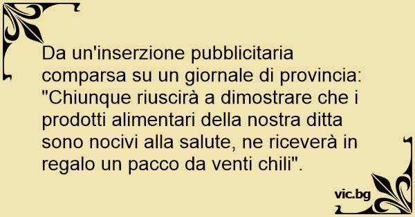 "Chiunque riuscirà a dimostrare che i prodotti alimentari della nostra ditta sono nocivi alla salute, ne riceverà in regalo un pacco da venti chili".