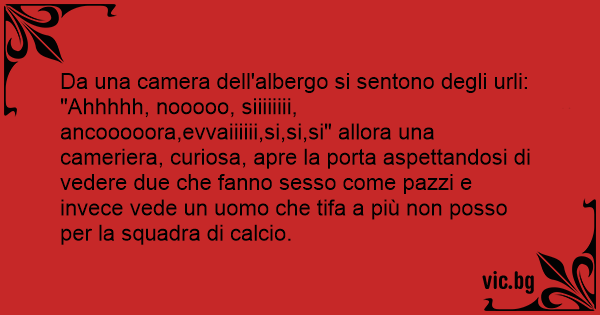 "Ahhhhh, nooooo, siiiiiiii, ancooooora,evvaiiiiii,si,si,si" allora una cameriera, curiosa, apre la porta aspettandosi di vedere due che fanno sesso come pazzi e invece vede un uomo che tifa a più non posso per la squadra di calcio.