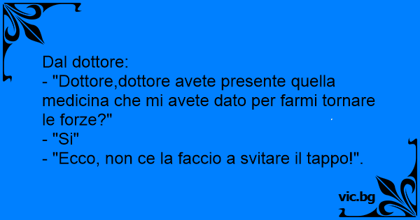 - "Dottore,dottore avete presente quella medicina che mi avete dato per farmi tornare le forze?"