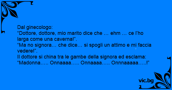 “Dottore, dottore, mio marito dice che … ehm … ce l’hо larga come una caverna!”.