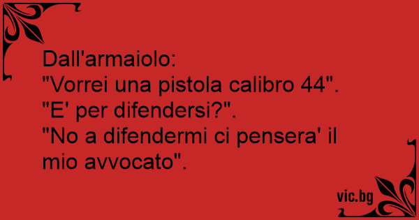 Una anziana signora entra in un negozio di armeria e chiede al commesso: - "vorrei acquistare una pistola" - "le serve per la difesa?" - "No no! per quella ci pensa il mio avvocato".