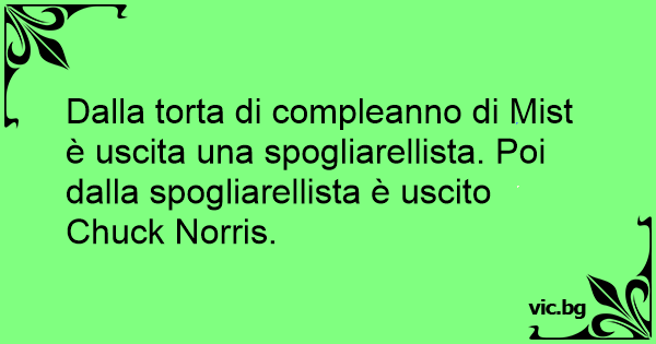 Dalla torta di compleanno di Мisт è uscita una spogliarellista. Poi dalla spogliarellista è uscito Chuck Norris.