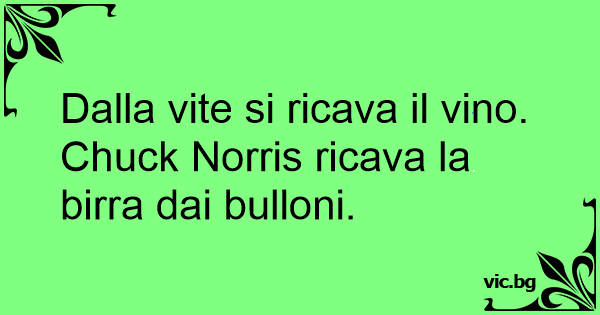Dalla vite si ricava il vino. Chuck Norris ricava la birra dai bulloni.