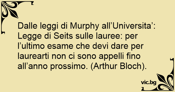 Dalle leggi di Murphy all’Universita’: Legge di Seits sulle lauree: per l’ultimo esame che devi dare per laurearti non ci sono appelli fino all’anno prossimo. (Arthur Bloch).
