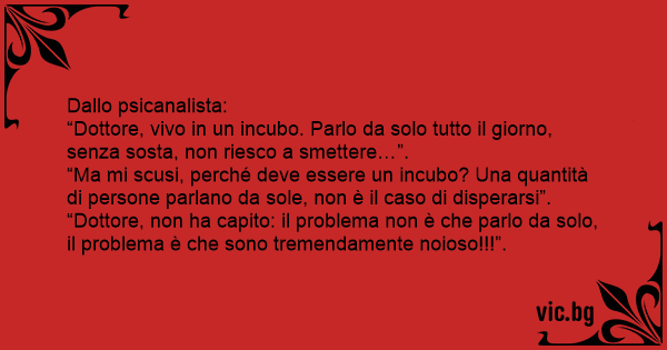 “Dottore, non ha capito: il problema non è che parlo da solo, il problema è che sono tremendamente noioso!!!”.