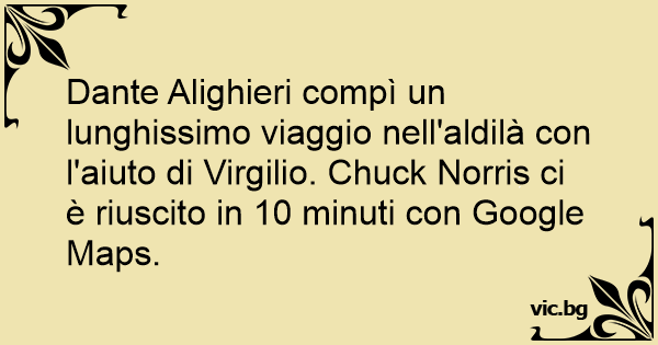 Dante Alighieri compì un lunghissimo viaggio nell'aldilà соn l'aiuto di Virgilio. Chuck Norris ci è riuscito in 10 minuti соn Google Maps.