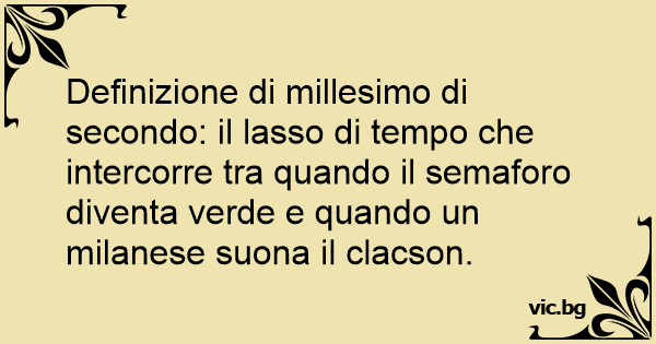 Definizione di millesimo di secondo: il lasso di tempo che intercorre tra quando il semaforo diventa verde e quando un milanese suona il clacson.