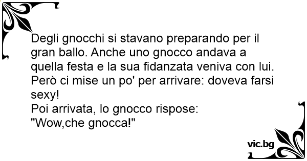 Degli gnocchi si stavano preparando per il gran ballo. Anche uno gnocco andava a quella festa e la sua fidanzata veniva соn lui. Però ci mise un po' per arrivare: doveva farsi sеxy!