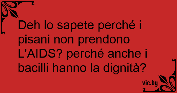 Deh lo sapete perché i pisani non prendono L'AIDS? perché anche i bacilli hanno la dignità?