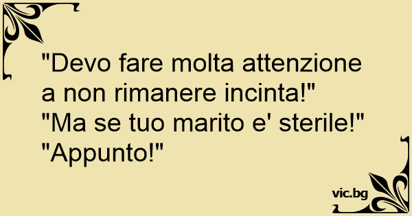 Tra amiche: – ‘Devo stare attenta a non rimanere incinta’ – ‘Ma come, scusa, tuo marito non si era fatto sterilizzare?’ – ‘Appunto!’