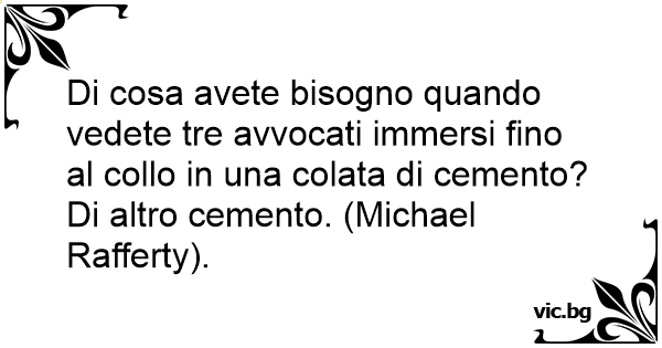 Di cosa avete bisogno quando vedete tre avvocati immersi fino al collo in una colata di cemento? Di altro cemento. (Michael Rafferty).