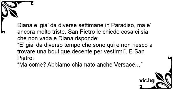 Diana e’ gia’ da diverse settimane in Paradiso, ma e’ ancora molto triste. San Pietro le chiede cosa ci sia che non vada e Diana risponde: