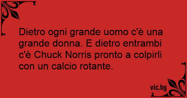 Dietro ogni grande uomo c'è una grande donna. E dietro entrambi c'è Chuck Norris pronto a colpirli соn un calcio rotante.